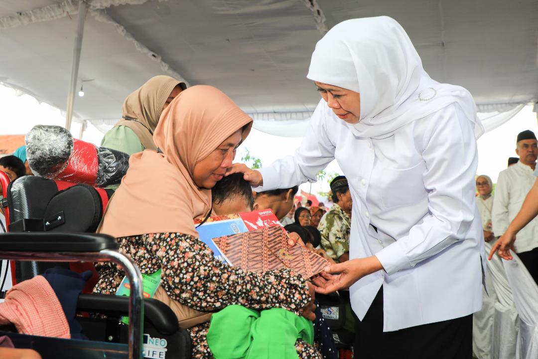 Gubernur Jawa Timur Khofifah Indar Parawansa saat menyalurkan bantuan sosial kepada masyarakat beberapa waktu lalu.