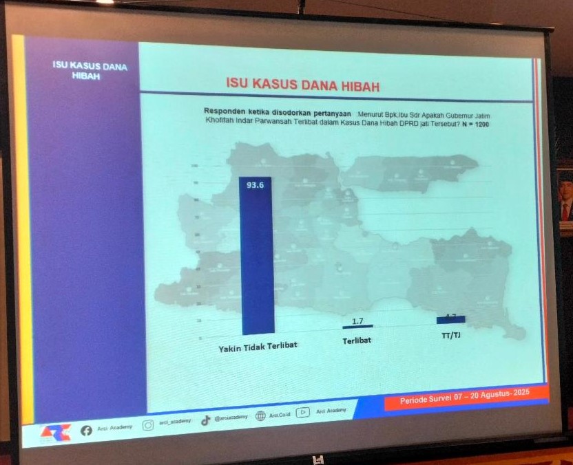 Meski demikian, ARCI juga menyoroti isu kasus dana hibah yang menjadi perhatian publik. Menurut Baihaki, survei menunjukkan sebagian besar warga mengikuti perkembangan kasus tersebut.