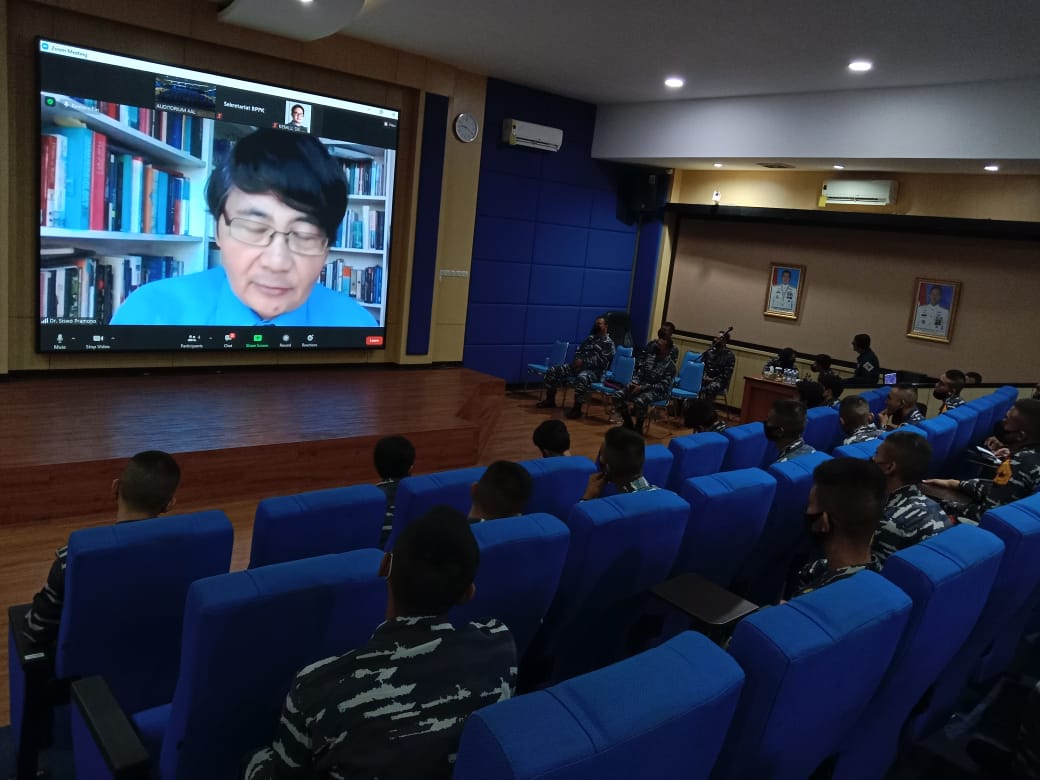 Surabaya, mediakorannusantara.com-Menjelang Keberangkatan latihan Praktek (Lattek) Kartika Jala Krida (KJK) tahun 2021, Taruna Akademi Angkatan Laut (AAL) Tingkat ll Angkatan ke-68 menerima Pembekalan Pengetahuan Maritime Diplomacy dari Kementrian Luar Negeri Republik Indonesia (Kemenlu RI) yang digelar secara virtual di Auditorium Gedung Mandalika, Kesatrian AALBumimoro, Surabaya, Sabtu (3/7).